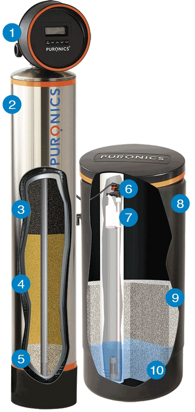 El sistema combinado de suavizador y filtro para toda la casa Puronics Hydronex iGen C está diseñado específicamente para reducir los niveles de cloramina, cloro y dureza que se encuentran típicamente en los suministros de agua municipal. El medio ChloroShield Clearess utiliza nuestra tecnología patentada Chlorostatic bajo el control de la válvula inteligente iGen para producir agua de calidad superior y saludable. La cloramina (una combinación de cloro y amoníaco) es un desinfectante común en los suministros de agua municipal, pero puede tener efectos secundarios potenciales para las personas y los peces. También es muy corrosiva para las tuberías de plomo y cobre. La válvula de control iGen® resistente a la corrosión y el tanque de múltiples capas envuelto en acero inoxidable garantizarán que tu familia disfrute de los beneficios de agua cristalina y saludable durante muchos años.